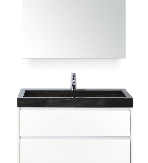 Badmeubelset 100 cm breed - bestaande uit: wastafelkast 2 laden, hardstenen wastafel Lucca met één kraangat en spiegelkast