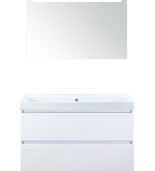 Badmeubelset 100 cm breed - bestaande uit: wastafelkast 2 laden, keramische wastafel Just zonder kraangat en luxe spiegel
