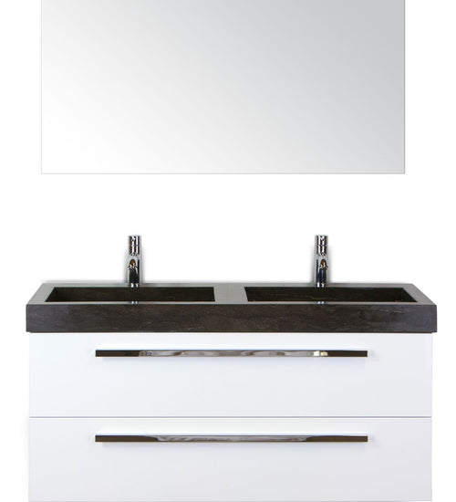 Badmeubelset 120 cm breed - bestaande uit: wastafelkast 2 laden, dubbele hardstenen wastafel en spiegel