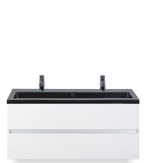 Badmeubelset 120 cm breed - bestaande uit: wastafelkast 2 laden greeploos en enkele keramische wastafel Djazz met twee kraangaten in zwart mat