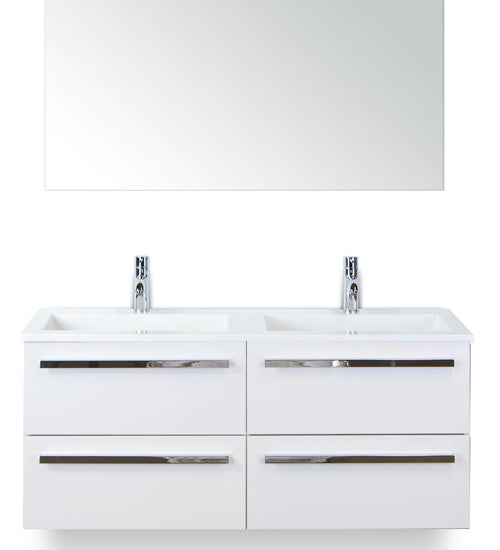 Badmeubelset 120 cm breed - bestaande uit: wastafelkast 4 laden, dubbele kunststeen wastafel Thin en spiegel