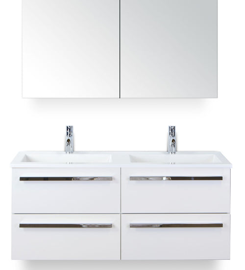 Badmeubelset 120 cm breed - bestaande uit: wastafelkast 4 laden, dubbele kunststeen wastafel Thin en spiegelkast