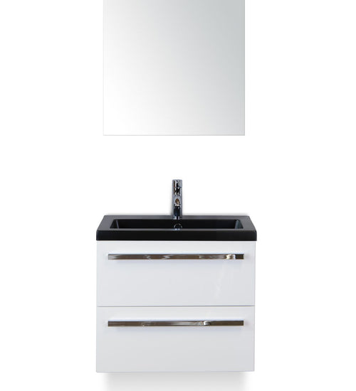 Badmeubelset 60 cm breed - bestaande uit: wastafelkast 2 laden, keramische wastafel Djazz in zwart mat en spiegel