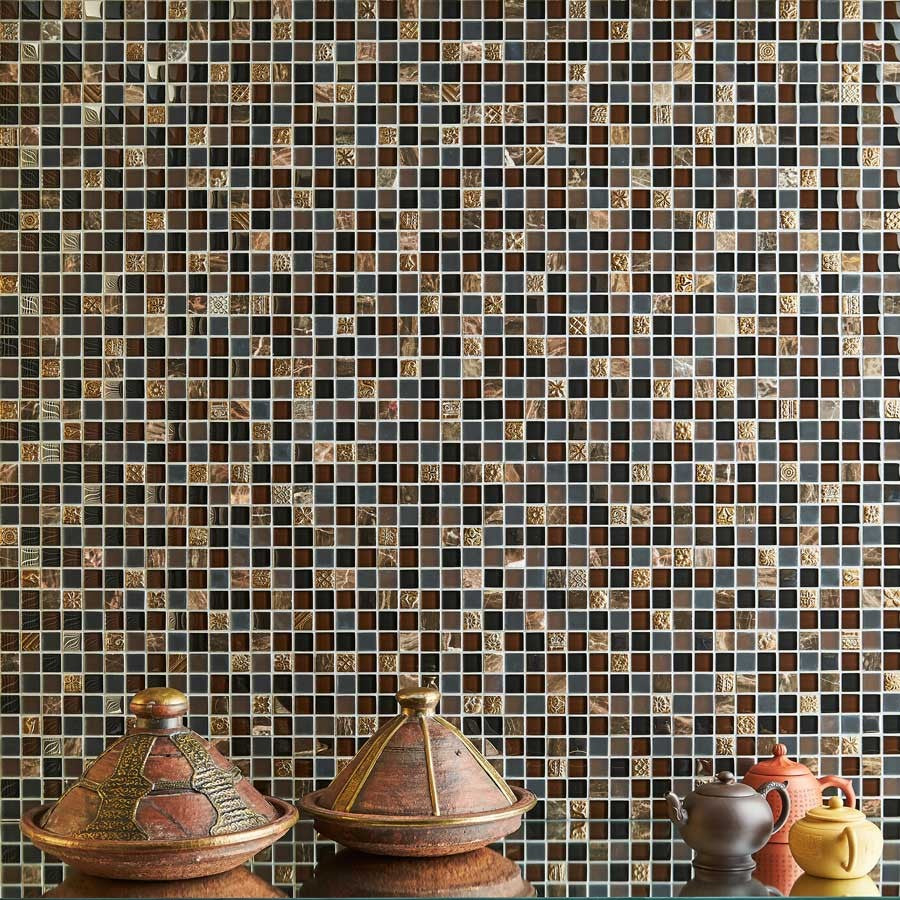 Mozaiektegel Aquacolor Fashion Multicolor glans 1x1 cm