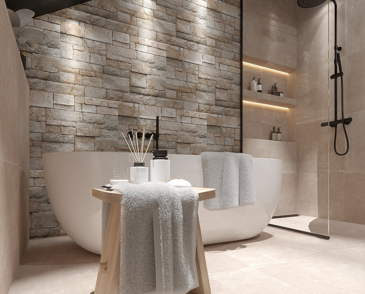 Mozaiektegel Stabigo Stone panel Creme 25x50 cm