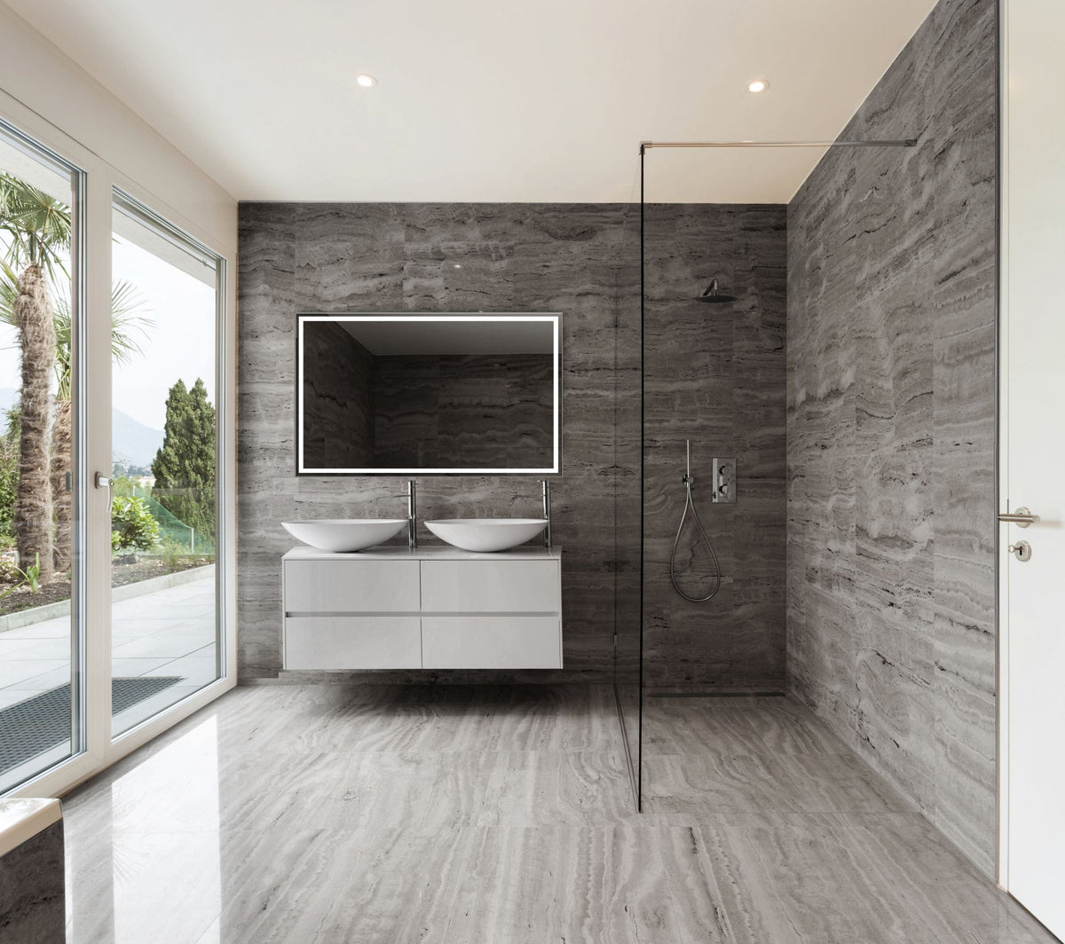 Spiegel Nero 120 x 80 cm in zwart frame met verlichtingsbalk rondom, touchbediening en spiegelverwarming