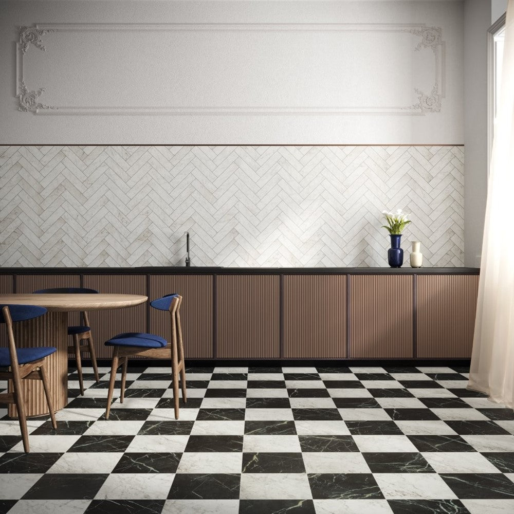 Vloertegel Unicomstarker Marmorea Carrara Ret. 7,5x30 cm