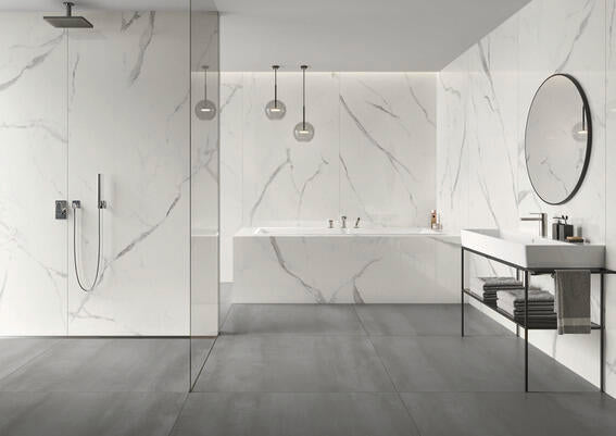 Een prachtige collectie badkamer wand- en vloertegels van Villeroy en Boch. Kies uit tegels met een coole betonlook of natuursteeneffect, met bijpassende 3D- en getextureerde decoropties om een verbluffend element achter het bad of in de doucheruimte te creëren, of creëer een ontspannende oase met de Calacatta-tegels met marmereffect voor een luxueus gevoel. Bij elkaar passende wand- en vloeropties beschikbaar in elke reeks.