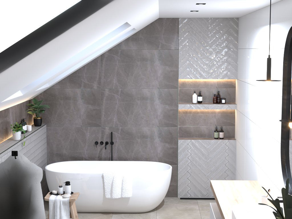 Wandtegel Del conca Frammenti Grijs glans 7x40 cm