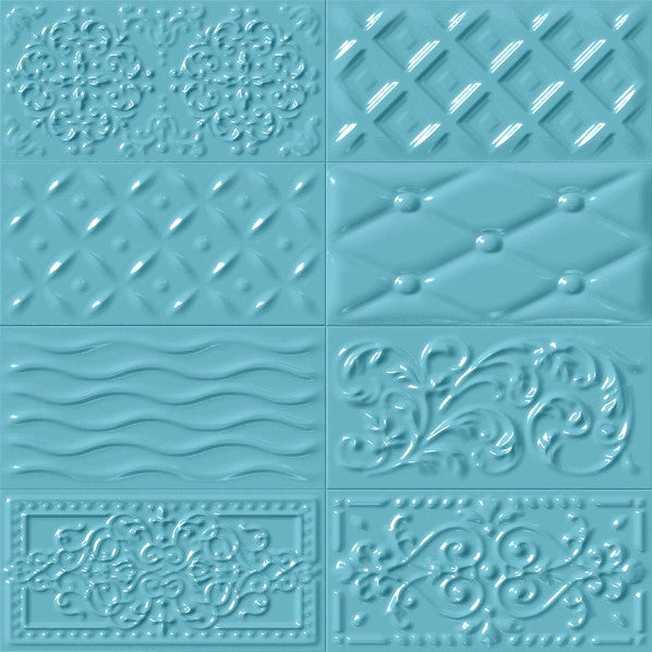 Wandtegel Vives Rivoli Raspail 8 décors Celeste 10x20 cm